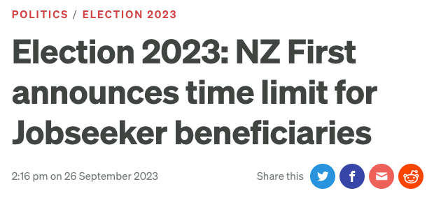 Winston Peters also got in on the Bennie bashing by saying his policy would limit any individual to a maximum time of two years on the Jobseeker benefit, what we used to call the dole, across their lifetime. Saying the following: