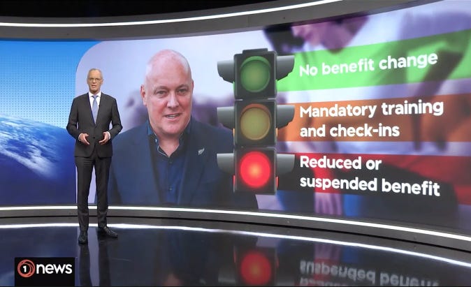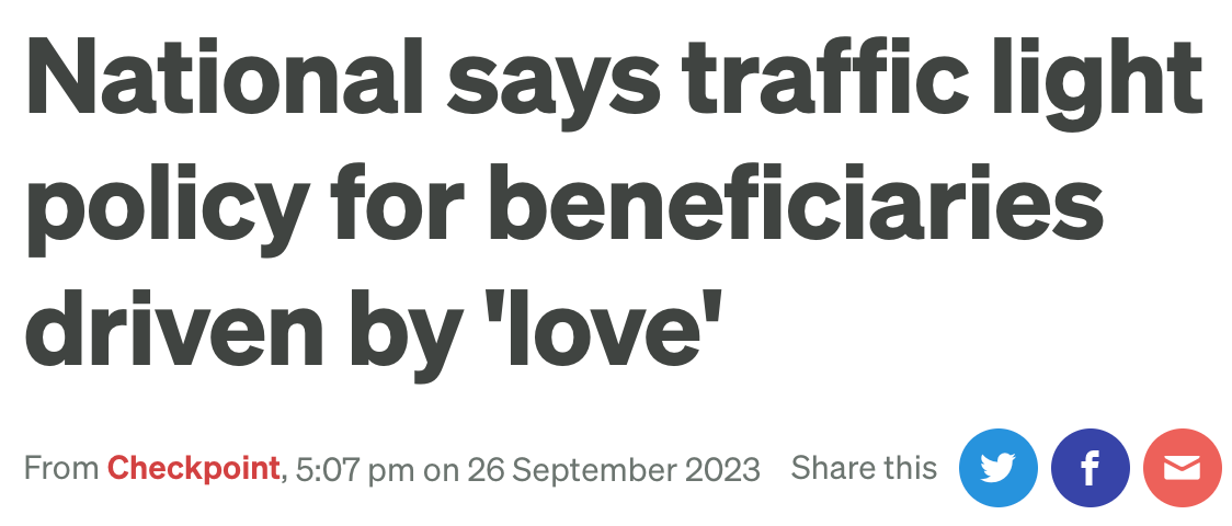 Yesterday the National Party announced a traffic light system for dealing to, sorry, dealing with, those on welfare. You might remember they favoured such a system during Covid, although that plan only had a green light.