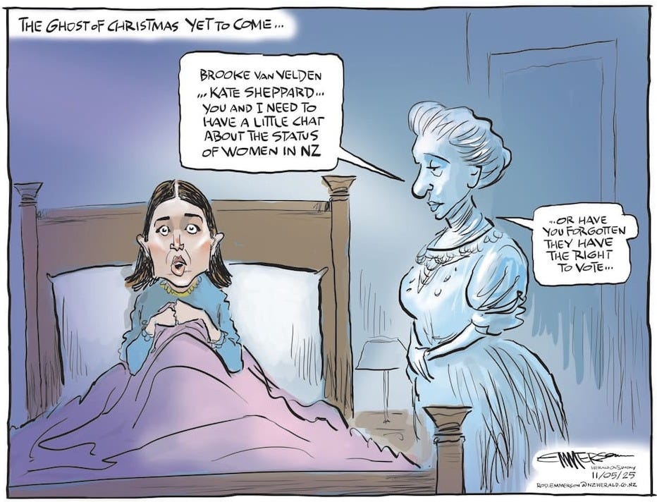I’m not proud, but I’m also not ashamed, because Brooke van Velden belongs to a select group of people who have caused great hardship and suffering under the mistaken belief that they are doing the right thing. She is in a category with the likes of Margaret Thatcher, Roger Douglas, Ruth Richardson, and, hopefully, one day soon, Nicola Willis.
