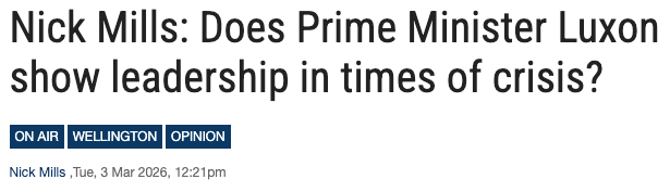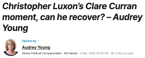 Bloody hell. Christopher Luxon is an absolute embarrassment. His presser was a complete trainwreck. I mean, how difficult is it to stand up and say that bombing a school of 200 girls is a bad thing. Jesus wept, I was appalled by that.