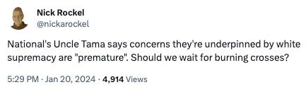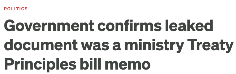 As a friend put it - “‘Premature?’ Unfortunately it sounds as if there is a plan beyond the first reading, and the Select Committee. Does National want to see social unrest and use that as an excuse to crack down hard on Māori? Adopting ACT's Treaty policy would fit nicely within that frame. Watch them stoke the fire.”