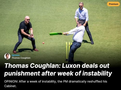 Following a rumoured meeting of the inner circle last weekend, the Prime Minister announced a reshuffle on Thursday. As Mr Luxon rearranged the furniture, while the music played, people wondered who would get the naughty chair and who would be promoted to the captain’s table.