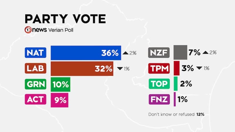 National are down 2% (38% → 36%) since the election.