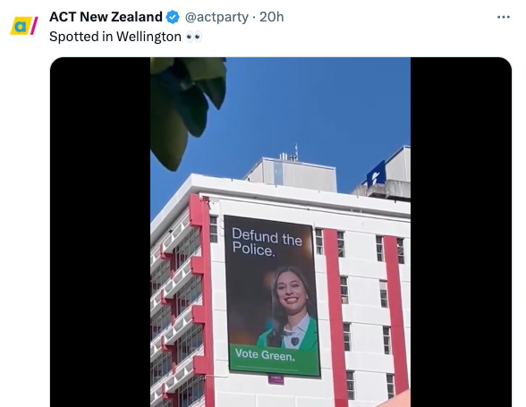 Back to Tamatha Paul and the claim that the Greens intend to defund the Police. The following excerpt is from RNZ’s article: Billboards attacking Green MPs appear in Wellington and Auckland
