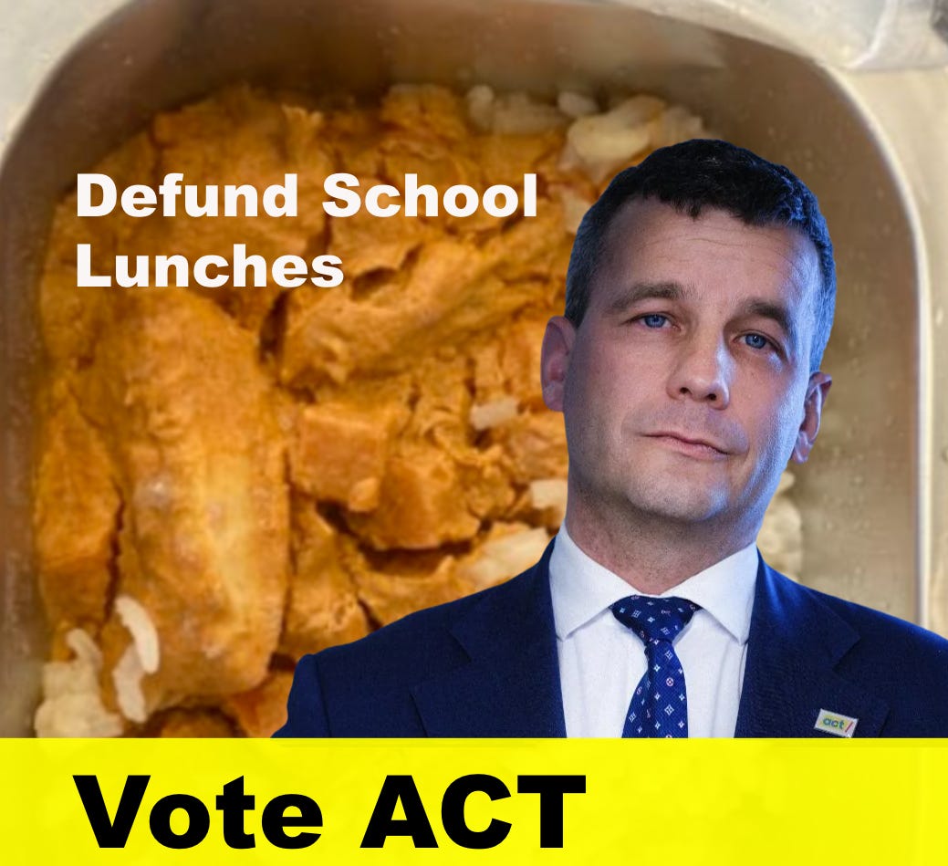 ACT have proxies for their dirty work, lobbyists who promote them like the Taxpayers’ Union, the media, which seems to find every brain fart of a policy or absurd claim worth covering, or funders like Elon Musk wannabe, Nick Mowbray.