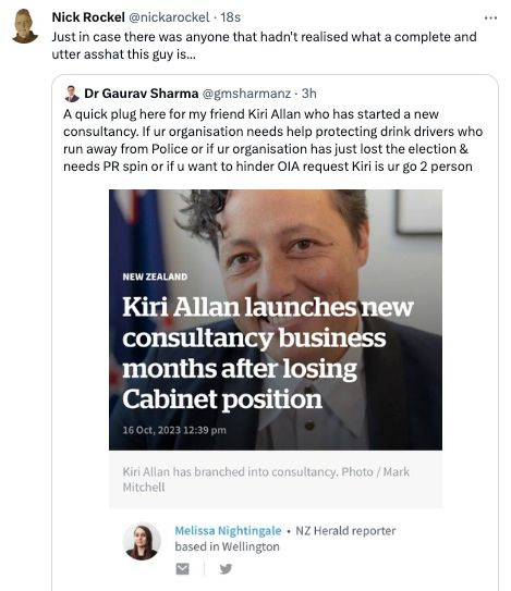 To prove that he was surely the real victim Gaurav also posted a series of vitriolic tweets about Michael Wood, Deborah Russell, and Trevor Mallard. What a guy.