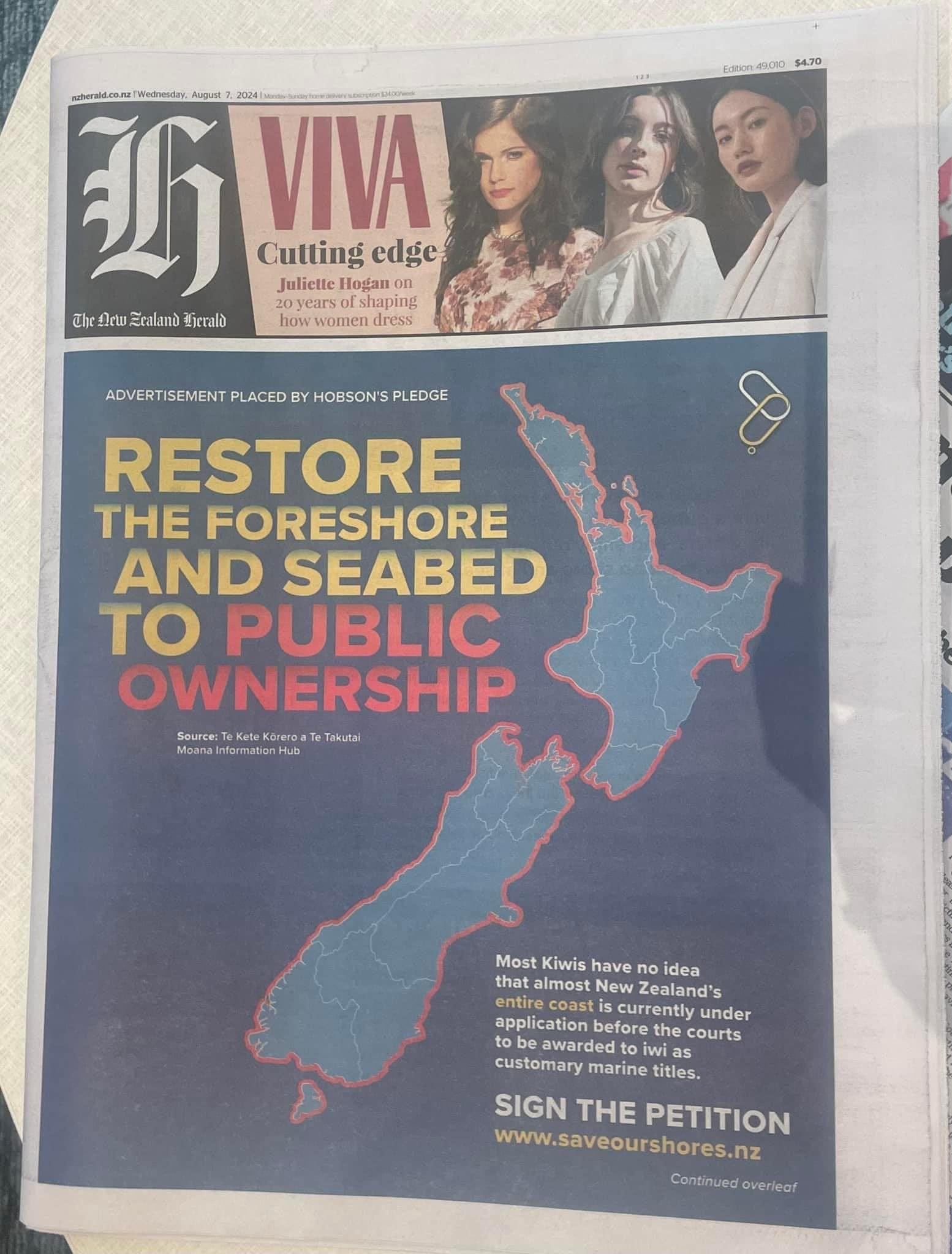 The Herald wrapped in Hobson's Pledge and Barry berates Te Pāti Māori.