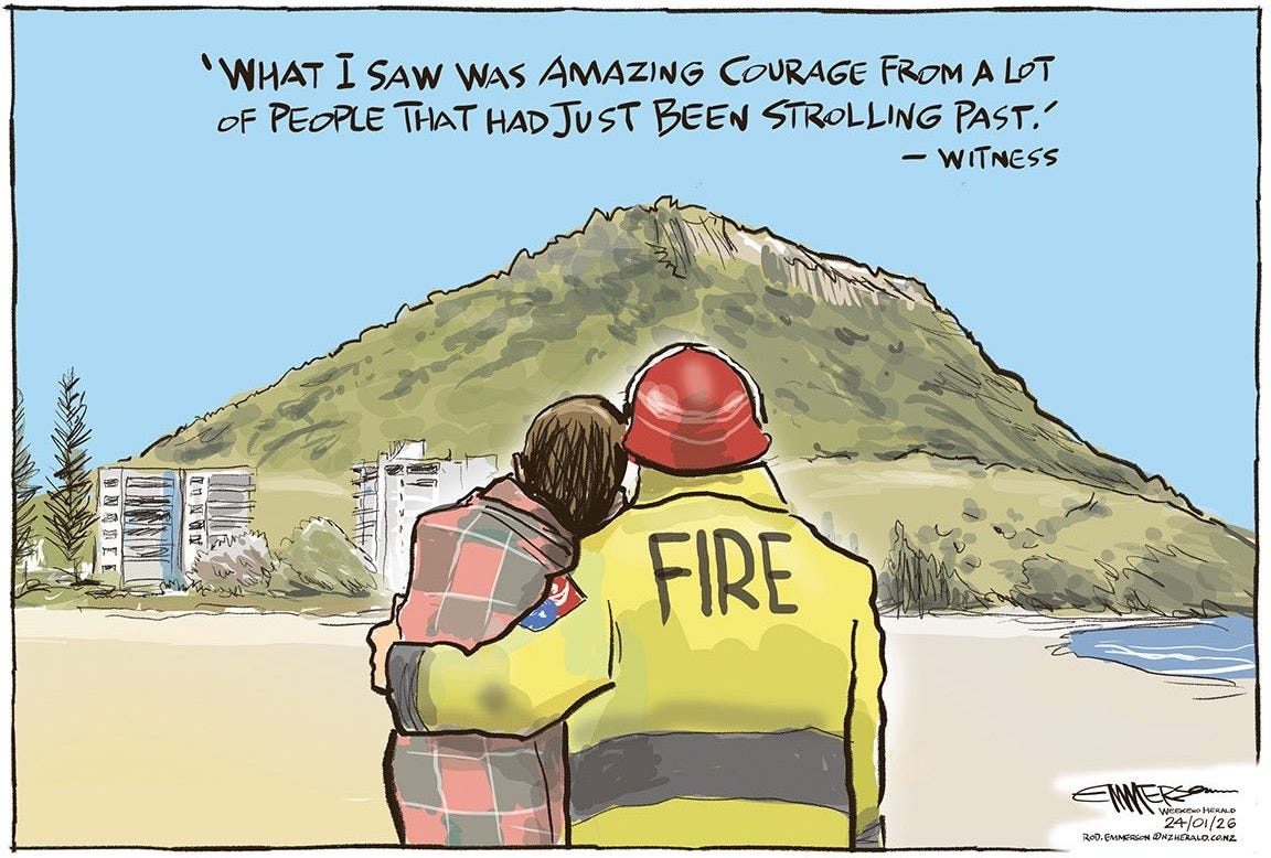 It is sad to see any sudden loss of life and it is right to send aroha their whanau. But tomorrow is the third anniversary of the Auckland Floods, where four people lost their lives. We can forget so quickly. It is hard out here where I live to do so, where empty sections where people once lived are now vacant, because we can't build again on flood prone land. Remember the slips at Muriwai? Or people wading up to their necks in water to escape? Richard Hills Ak Councillor has done a really good article on the SST about his memories from the chaos inflicted on the North Shore and Waurau Valley. (Unfortunately, paywalled). Cyclone Gabrielle followed soon after. The inquisitions will happen. Some have already begun on FB blaming the Iwi owners of Mauao for cutting down too many pine trees. While we must be respectful, we must also call out the climate emergency we have in NZ. Meanwhile, on another topic, our Foreign Minister or PM hasn't said boo about Trump's comments about allies in Afghanistan. Even Keir Starmer managed to. Willie Apiata VC anyone?
