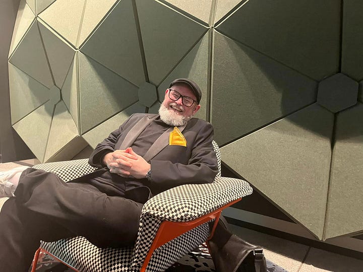 Seymour arrived, and I grabbed a photo of he and Helmut before having a chat. David was pleasant enough, but there was none of the friendliness I’d found from Bomber, Damian, Shane, and Helmut - all charming men in their own way. We exchanged some words about what I do, about writers, but it felt like he was going through the motions - to be fair, he must meet an awful lot of people.