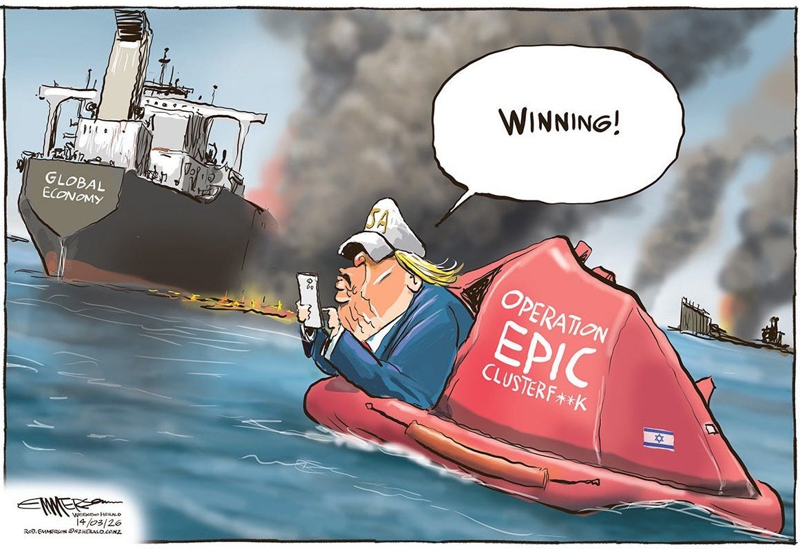 All this economic damage has been caused by the US and Israel, despite no real threat of an imminent attack or convincing story of WMDs; perhaps the rest of the world should follow Trump’s approach and start imposing significant tariffs on these two nations until they settle their debts.