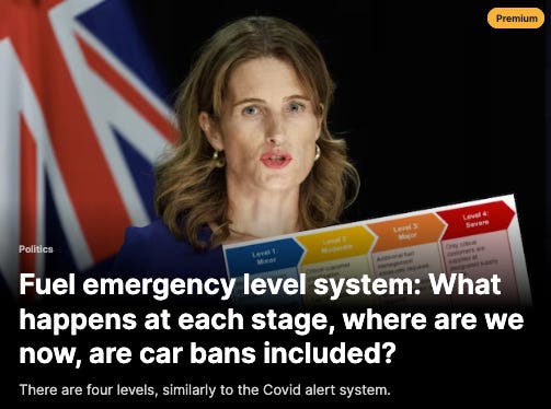 We already have petrol stations running out of fuel due to “high demand”, which is a polite way of saying “panic buying”. Prices are climbing above $3 a litre, and we haven’t even begun using oil imported since the war.