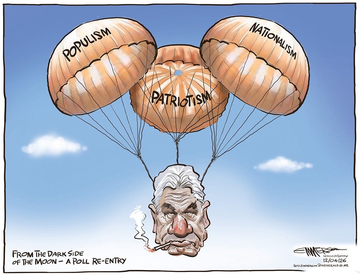 Winston, on the other hand, is surging in the polls, prompting some to ask whether we might see a Prime Minister Peters, and making it hard to envisage any government being formed without his support, barring an implausible Grand Coalition of National and Labour.