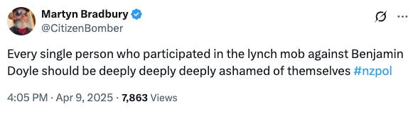 To end, I’d like to share a paragraph from a paywalled article in the Herald: Green MP Benjamin Doyle has been the victim of a moral panic - Opinion by Paul Thistoll, the head of Countering Hate Speech Aotearoa (CHSA).