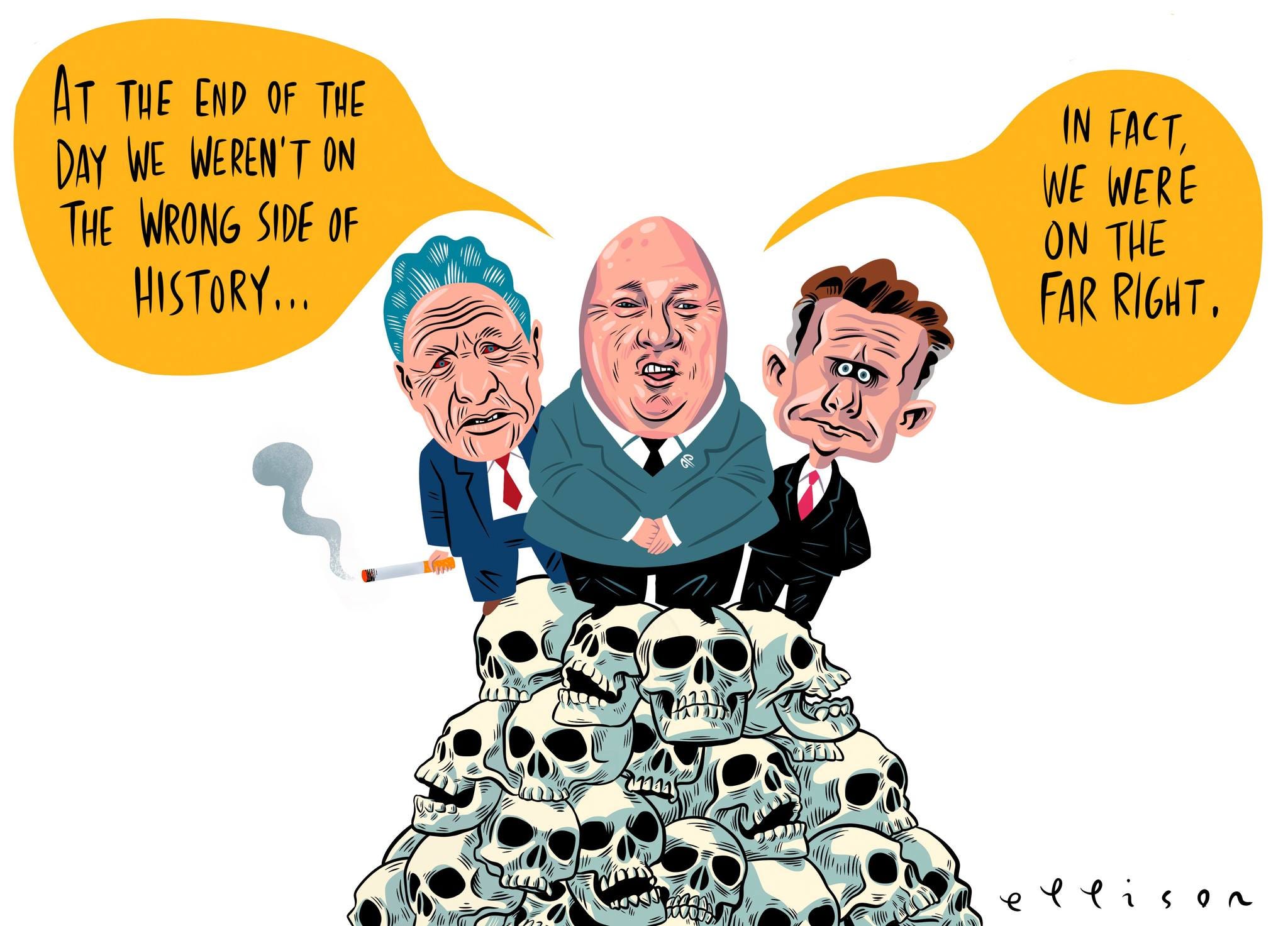 MP for ACT, the freedom of speech party, and Himmler looky-likey, Simon Court, says let’s not call it Genocide, we might hurt Israeli feelings.