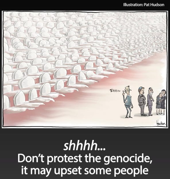 So we have a Health Minister offering his thoughts to a regime undertaking genocide, a Foreign Minister playing silly finger pointing games in relation to one of the most important foreign events of our time, and a friend of Israel who wants us to stop calling the ethnic cleansing occuring in Gaza genocide.