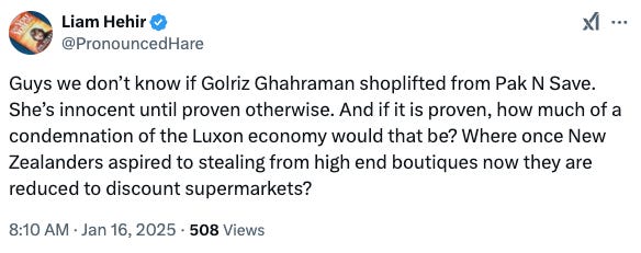 Today, their lead story is about a former MP who shoplifted at Pak and Save last year. A sad tale, although it is providing entertainment for some like Liam Hehir (pronounced “asshole”):
