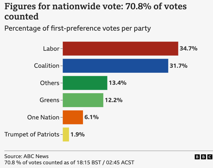 Early in the evening, I was watching the ABC coverage, and the political pundits who were quite reluctant to make predictions were increasingly making noises about the Liberal Party leader and would-be next Prime Minister of Australia, Peter Dutton, not only losing the election but also his seat and his career.