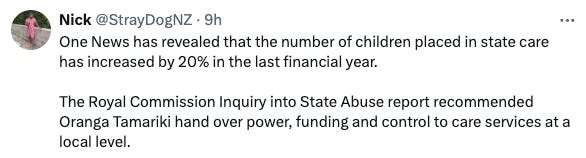 All the words from this government which actually doesn’t give a damn. Yesterday in Nine to Noon, we heard about some 400 social service community organisations who work with the children and whanau so much at the heart of the report who are in funding limbo, their contracts having expired at the end of June. As of yesterday, most had no idea of what the future holds. No one in OT was giving them answers, funding managers etc having been made redundant or MIA. They don’t know if they are casualties of the government’s spending cuts or a philosophical divide or something else. Just a shambles, caused by the chaos this government’s war on the public service and its populist policies. At the heart of their slashing, there are real people and services, not faceless bureaucrats who they pretend are sitting around doing nothing.