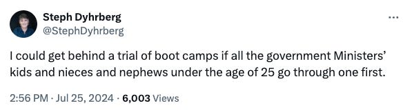 I should add that we’re not just talking about those who will be put into boot camps. As you’re no doubt aware that is just the tip of the iceberg when we talk about those in state care.