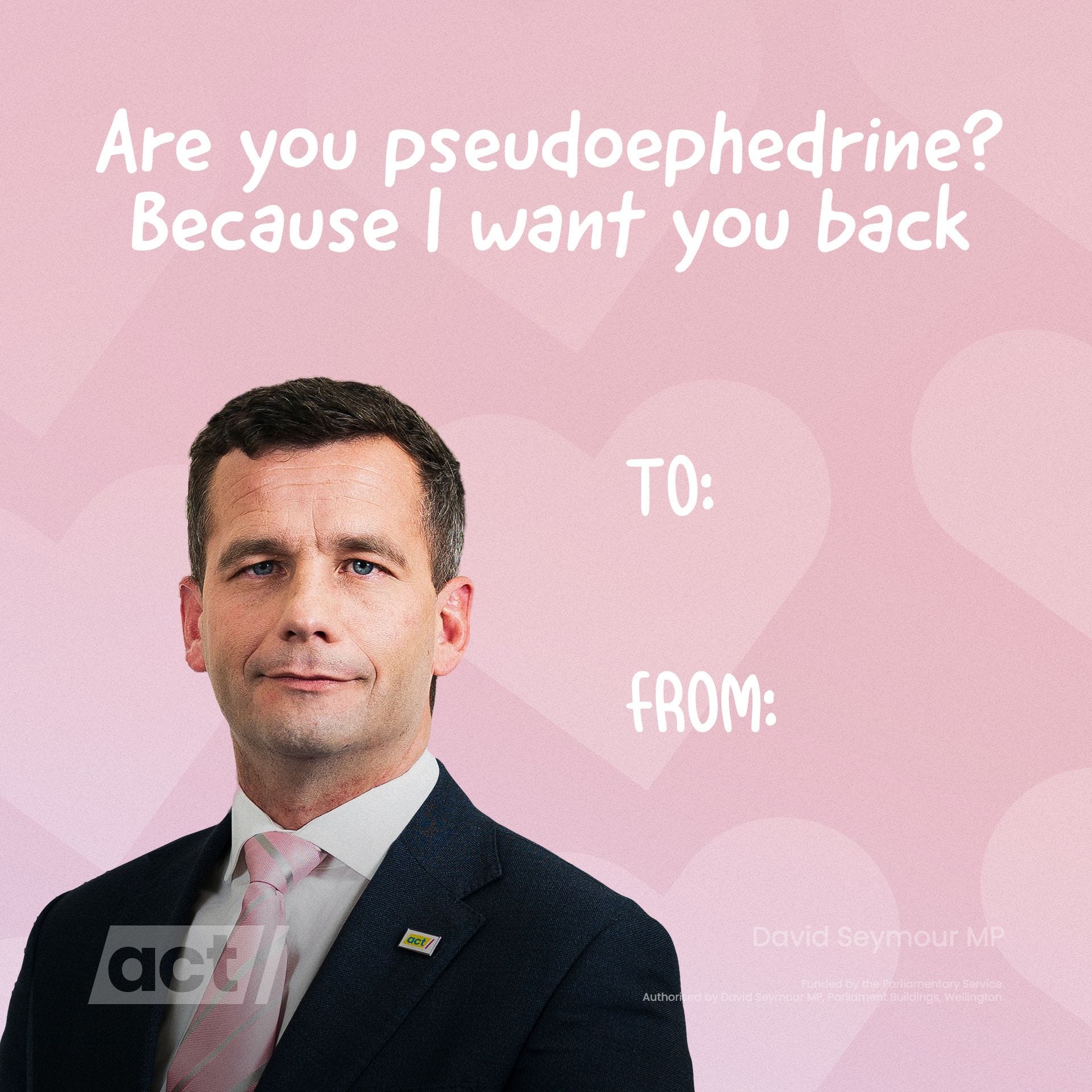 Anyway ACT are bringing back the Pseudoephedrine because, I don’t know, freedom? Maybe someone should tell them how much people used to enjoy Coca Cola when it contained actual cocaine? I’m sure that’d be a hit with their viaduct set.
