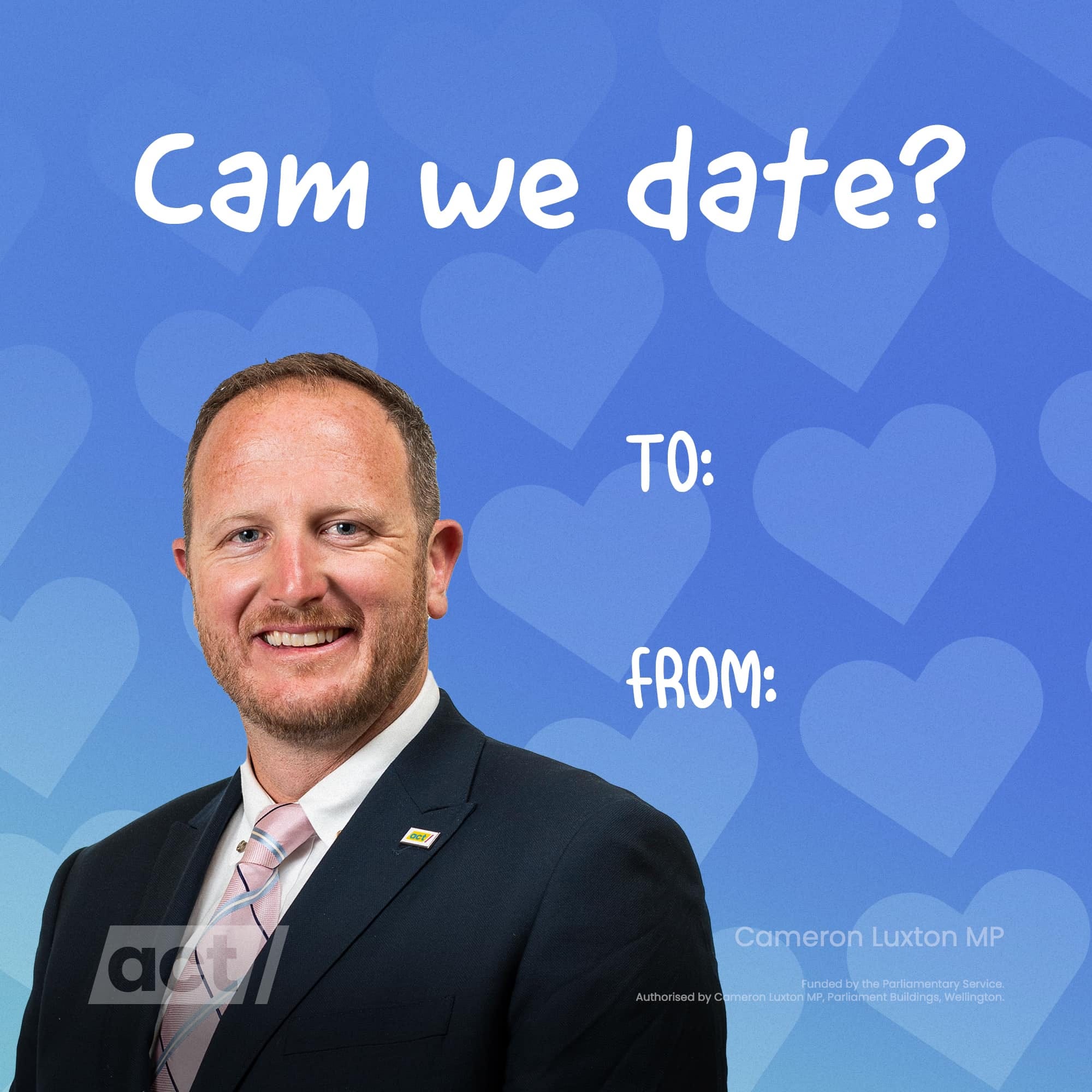 You’d think perhaps he could’ve gone with “Cam I see you tonight?” or “Cam I compare thee to a summer’s day?” But nope, Mr Luxton went straight to “Cam we Date?” How can you resist ladies?