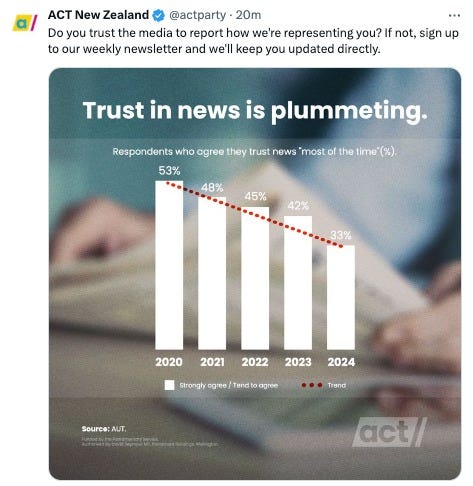 Yep. On a day when we lost a fairly sizeable chunk of our media, the ACT party had the solution. You could get the news straight from them. Brilliant!