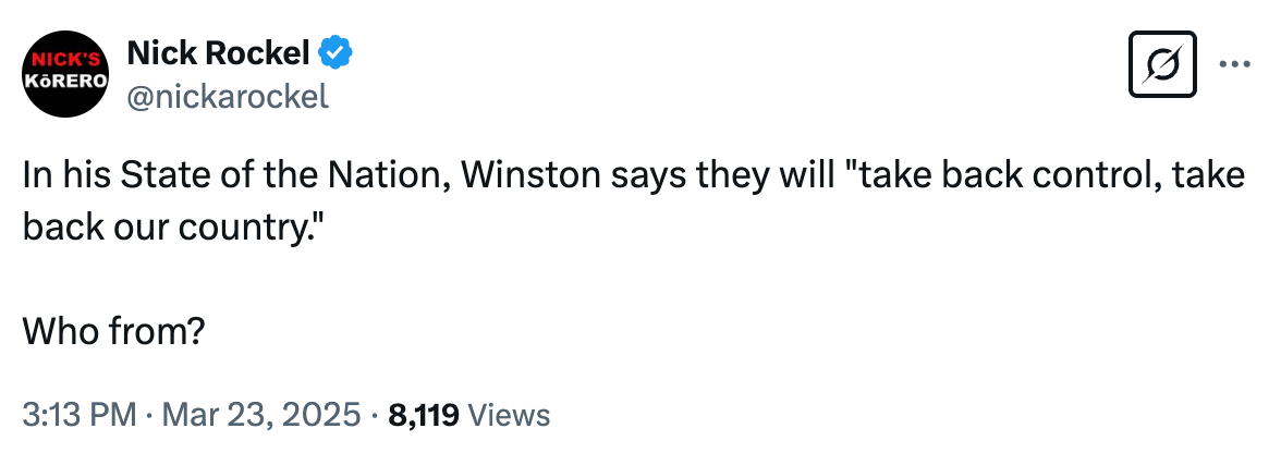 If Peters’ grand strategy for 2026 is still blaming Labour after a whole term in office, I think he’s in trouble - and he’ll need a distraction. Maybe someone else to blame things on?