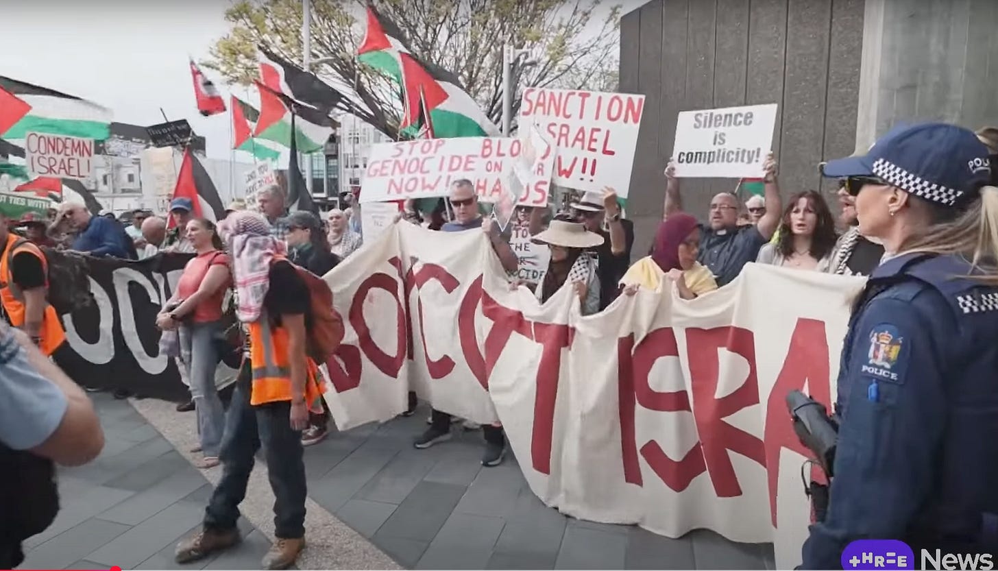Prior to the speech, protesters outside the venue encouraged our Foreign Minister to take an interest in civilians being murdered in Gaza, chanting, “Shame on Winston”.